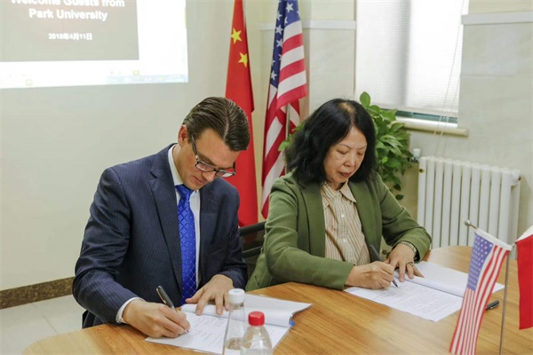 ??最后,國際教育學(xué)院教學(xué)院長(zhǎng)劉淑穎教授和美國帕克大學(xué)副校長(zhǎng)簽訂初步意向合作協(xié)議。