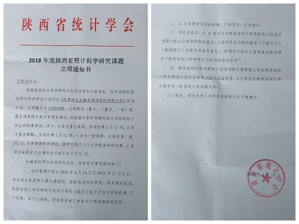 ? ? 2018年4月19日,省統(tǒng)計(jì)學(xué)會(huì)公布2018年度陜西省統(tǒng)計(jì)科學(xué)研究計(jì)劃項(xiàng)目立項(xiàng)名單,我院王軍平老師申報(bào)的《陜西綠色金融發(fā)展進(jìn)程的測(cè)度分析》再次成功立項(xiàng)并獲得重點(diǎn)項(xiàng)目,這是今年我校省級(jí)科研項(xiàng)目申報(bào)立項(xiàng)的又一成果。