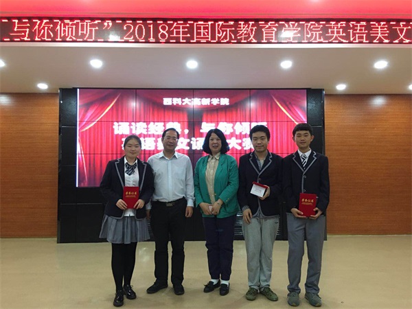 ? ? 欣賞了一首激情飽滿的英文歌曲之后,接下來本次比賽按照非英語專業(yè)組和英語專業(yè)組進(jìn)行美文誦讀。18名選手口語表達(dá)準(zhǔn)確流暢,情感充沛,服裝儀態(tài)自然得體,背景音樂的渲染也恰到好處。隨著背景音樂的變化,選手們時而慷慨激昂,時而深情低沉,他們以清晰的發(fā)音,優(yōu)美的語言,嫻熟的口語能力和自信的微笑,展現(xiàn)出他們對于英語學(xué)習(xí)的熱愛和執(zhí)著,同時也展現(xiàn)了他們昔日的努力成果和對未來美好的憧憬,將青春風(fēng)采展現(xiàn)得淋漓盡致。比賽結(jié)束后由我們的評委老師公平公正地對每位選手進(jìn)行打分點評,經(jīng)過激烈的角逐獲獎名單如下: