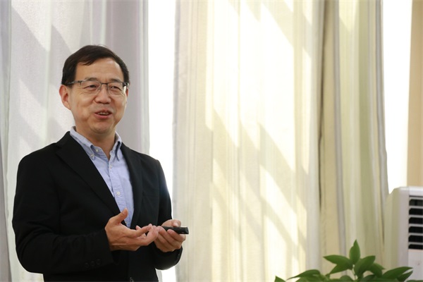 ? ? 隨后,校友一行來(lái)到了圖書(shū)館會(huì)議室,在輕松愉悅的氛圍中拉開(kāi)了跨界交流分享會(huì)序幕。孫龍杰博士首先介紹了學(xué)院的概況,重點(diǎn)介紹了學(xué)院產(chǎn)教融合的辦學(xué)理念、校企合作項(xiàng)目以及創(chuàng)新創(chuàng)業(yè)等領(lǐng)域探索的收獲。