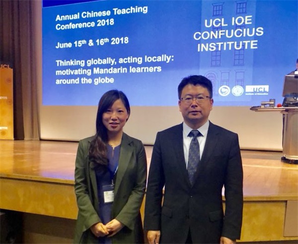 ? ? 2018年6月15日我院漢語國際教育教研室副主任陳苗老師參加英國倫敦第15屆年度中文教學會議,會議由英國IOE 孔子學院主辦,會議主題為“Thinking globally, acting locally; Motivating mandarin learners around the globe”。出席會議的有:中國大使館教育參贊、國家漢辦副主任夏建輝、倫敦大學學院教育學院(IOE)孔子學院的院長Katharine Carruthers、倫敦大學學院教育學院語言教學專家Caroline Conlon、英國教育部“中文培優(yōu)項目”負責人Philippa Vallely、英國劍橋大學教育學院高級講師劉永燦、全英中小學中文學校校長及優(yōu)秀中文教師等。