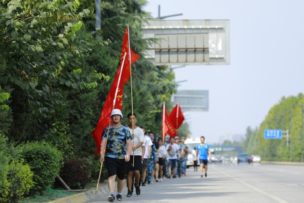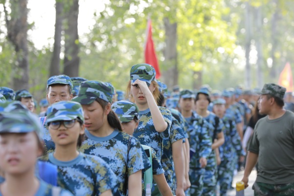 ? ? 新生們在領(lǐng)導老師和軍訓教官的帶領(lǐng)下,高擎連旗,喊著響亮的口號,邁著整齊劃一的步伐,有序的開展了徒步拉練活動。