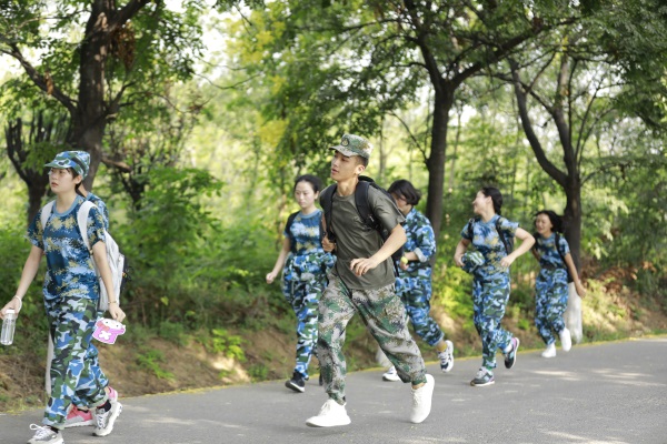 ? ? 拉練途中,教官和老師們?yōu)楣奈枋繗?,組織大家一路高唱軍歌、呼喊口號,并及時對學生送去關(guān)心,不時提醒學生注意安全行進。