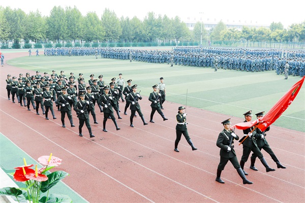 ? ? 在莊嚴(yán)的國歌聲中,新生開學(xué)典禮暨軍訓(xùn)總結(jié)大會(huì)拉開帷幕。迎軍旗儀式后,2018級受訓(xùn)新生在激昂的檢閱進(jìn)行曲中,滿懷熱情,邁著整齊劃一的步伐,昂首闊步的通過主席臺(tái)。各方陣熱情高漲、精神飽滿,嘹亮的口號聲在操場上此起彼伏,彰顯出青春的力量與生機(jī)。