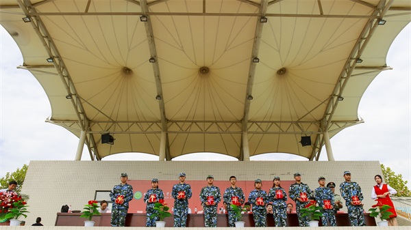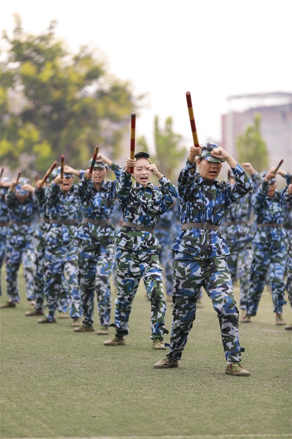 ? ? 隨后,2018級新生進(jìn)行了軍訓(xùn)匯報(bào)表演,同學(xué)們組成多個(gè)方隊(duì),表演了軍體拳、棍術(shù)、花樣隊(duì)列等項(xiàng)目,隊(duì)列表演整齊劃一、剛健有力,展示了新生良好的形象和精神風(fēng)貌,贏得在場師生的陣陣掌聲。