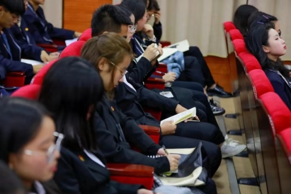 ? ? 會議最后,黨委書記汪仁為本次大學(xué)生骨干培訓(xùn)開講第一課,他通過豐富有趣的案列講解相關(guān)知識,同學(xué)們認(rèn)真聽講做好筆記,在活躍的氣氛中收獲了知識,提升了自我能力。