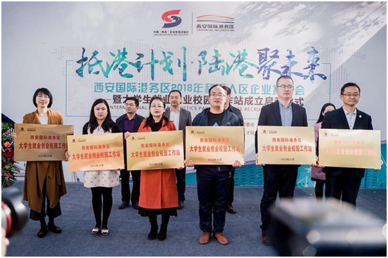 ? ? 為進(jìn)一步做好學(xué)院畢業(yè)生就業(yè)與創(chuàng)業(yè)工作, 10月28日,我院受邀參加了西安國際港務(wù)區(qū)2018秋季入?yún)^(qū)企業(yè)招聘會暨大學(xué)生就業(yè)創(chuàng)業(yè)校園工作站成立啟動儀式。西安國際港務(wù)區(qū)黨工委副書記陳博、市人社局處長、港務(wù)區(qū)管委會、組織人事局等領(lǐng)導(dǎo)出席了本次啟動儀式并向我院及西北大學(xué)、西安外國語大學(xué)等18所合作高校授予“大學(xué)生就業(yè)創(chuàng)業(yè)校園工作站”。