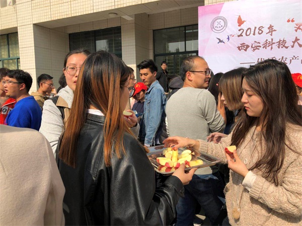 ? ? 展銷活動現(xiàn)場除了富縣特產(chǎn)精品蘋果,還有油糕、大米、小米等深受師生喜愛的優(yōu)質(zhì)農(nóng)產(chǎn)品。學院師生紛紛品嘗購買用自身的行動助力扶貧攻堅工作,為富縣地區(qū)經(jīng)濟發(fā)展獻一份自己的愛心。