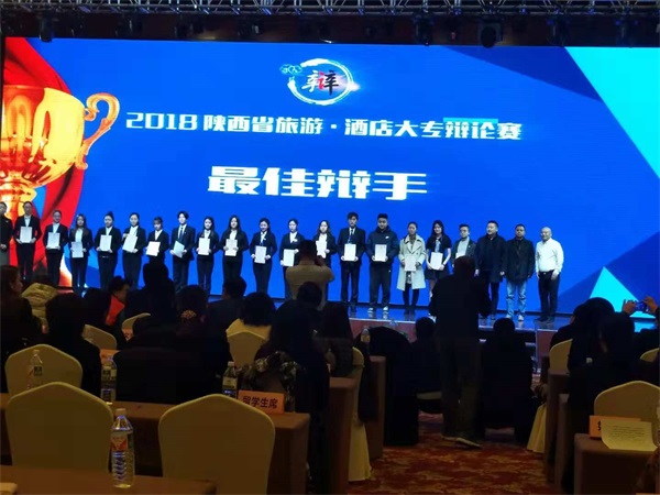 ? ? 12月8日,由陜西省文化和旅游廳指導(dǎo),陜西省策劃協(xié)會(huì)、陜西旅游飯店協(xié)會(huì)等主辦的的“2018陜西省旅游·酒店大專辯論賽”決賽和頒獎(jiǎng)儀式在西安曲江惠賓苑舉辦。我院學(xué)生趙紫薇、姬旭濤 、王楚樵、田佳佳、胡深、李宣辰、閆蓓參加比賽。最終獲得團(tuán)體優(yōu)秀獎(jiǎng),趙紫薇榮獲全場(chǎng)最佳辯手,帶隊(duì)老師粱惠珍、衷敏青獲優(yōu)秀指導(dǎo)教師。