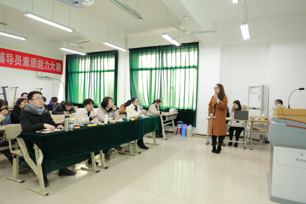? ? 本次比賽分四組同時進行,圍繞理論宣講,案例分析,談心談話,大海撈針四個環(huán)節(jié)開展。理論宣講環(huán)節(jié)主要考察輔導員對政策、理論知識的理解深度和掌控程度;案例分析環(huán)節(jié)主要考察輔導員分析問題、研判問題、解決問題的能力,各組輔導員需圍繞實際案例,從問題本質(zhì)、解決思路、實施辦法及相關(guān)啟示進行闡述;談心談話環(huán)節(jié)考察的是各輔導員結(jié)合自身的工作實踐和理論知識,全方面、多層次幫助學生尋找問題,解決問題,引導學生健康成長成才;大海撈針環(huán)節(jié)要求各位輔導員根據(jù)屏幕上所播放的學生照片來對應(yīng)學生的個人信息,考察輔導員對學生情況的了解程度,以便今后有針對的開展工作。