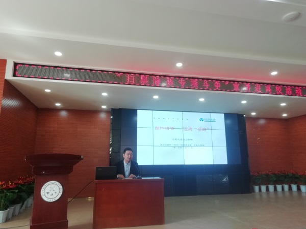活動伊始,李谷鵬老師通過一個短片來引導學生們進入主題,通過短片的形式讓廣大師生清楚的了解到現(xiàn)今“黑惡勢力”的現(xiàn)狀。緊接著,李老師向學生們介紹了校園黑惡勢力的種類、黑惡犯罪的展現(xiàn)形式,以及黑惡勢力中“校園欺凌、通訊網絡詐騙、校園網貸”的特征。通過相關實例情景再現(xiàn),讓師生們認清了何為“黑惡勢力”,認識到了黑惡勢力的危害性。李老師的講座內容豐富、針對性強、形式多樣,讓學生明白了面對“黑惡勢力”要學會用法律武器保護自己。此后,李老師向在座師生介紹了如何支持“掃黑除惡”工作,并強調:如遇到黑惡勢力,應及時向相關部門舉報,切不可忍氣吞聲,姑息養(yǎng)奸。
