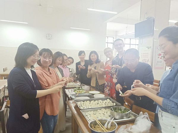 在會議上,雙方就交流交換項目進(jìn)行了回訪洽談,蘇老師對我校師生給出高度稱贊,對我們的漢語教學(xué)表現(xiàn)出濃厚興趣,希望雙方在今后可以進(jìn)行深度合作洽談。講座上,蘇老師從英國肯特大學(xué)基本情況、英國中小學(xué)漢語教學(xué)情況、短期英語培訓(xùn)項目三個方面進(jìn)行了詳細(xì)介紹,同學(xué)們在講座中受益匪淺。會后,蘇老師、林西(Karoline)和秦子瞻(Jason)兩名英國留學(xué)生與我校漢語國際教育師生在國際樓餐廳開展了中國特色烹飪——包餃子活動,在歡樂的氣氛中體驗到了中國文化烹飪特色。
