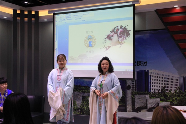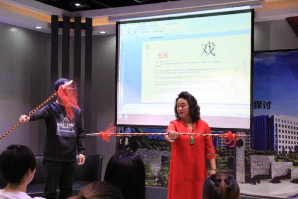 講座伊始,劉宇老師首先對戲曲藝術(shù)的價值和意義進(jìn)行了介紹,并希望同學(xué)們能夠通過本次講座學(xué)習(xí),進(jìn)而讓藝術(shù)融入生活,讓生活充滿藝術(shù)。接著,她從程式、唱念做打、水袖功、耍下場和五法等方面結(jié)合實際案例,對戲曲文化、戲曲技法和戲曲鑒賞等內(nèi)容進(jìn)行了詳細(xì)解讀,并在現(xiàn)場為同學(xué)們針對戲曲相關(guān)技法做了示范。整個講座過程中,劉宇老師內(nèi)容充實,案例豐富,講述生動,寓教于樂,不時與學(xué)生交流互動。全體學(xué)生用心聆聽,現(xiàn)場氛圍十分熱烈,不時響起陣陣掌聲。