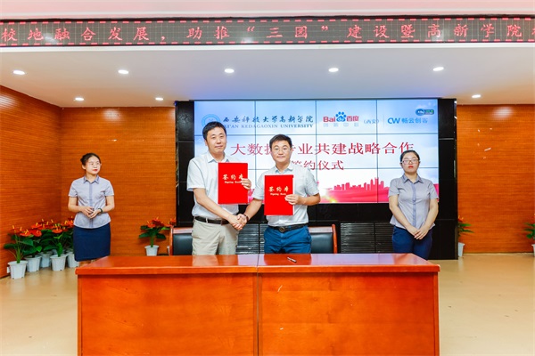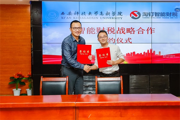 在簽約儀式上,西科大高新學(xué)院代表董事長助理胡秋實(shí)與陜西淘丁智能財(cái)稅服務(wù)有限公司代表總經(jīng)理廖野上臺(tái),代表雙方簽署協(xié)合作議書。接著,西科大高新學(xué)院代表副院長董世平與陜西淘丁集團(tuán)董事長蘇斌上臺(tái),代表雙方簽署戰(zhàn)略合作作議書。雙方將開放資源、友好協(xié)作,共同建設(shè)大數(shù)據(jù)專業(yè),培養(yǎng)優(yōu)質(zhì)實(shí)踐型人才。與會(huì)人員用熱烈的掌聲表達(dá)對(duì)雙方簽約的祝賀和祝福!