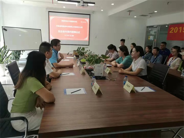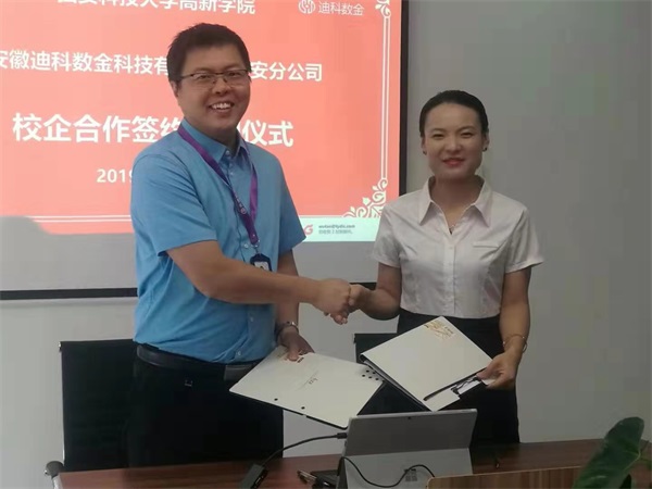 為深化產(chǎn)教融合、校企合作,探索校企合作的長效機制,2019年7月10日上午,經(jīng)濟與管理學(xué)院與安徽迪科數(shù)金校企合作簽約授牌儀式在高新區(qū)嘉昱大廈舉行,副院長李小麗、副院長楊喜梅、財務(wù)管理教研室王青亞老師、安輝迪科數(shù)金西安分公司總經(jīng)理田志卿、人力資源部經(jīng)理雒琳及我院實習(xí)生代表參加了此次簽約授牌儀式。