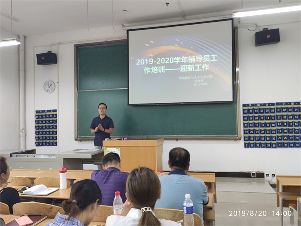 負責迎新工作培訓的是國際教育與人文藝術學院的院長助理田永青老師,他從迎新準備工作、報道流程、宿舍分配、新生戶口檔案、新生體檢、常見問題等相關方面進行說明,讓輔導員們對此項工作有了明確的認識,確保我院迎新工作能夠有序、順利地進行。