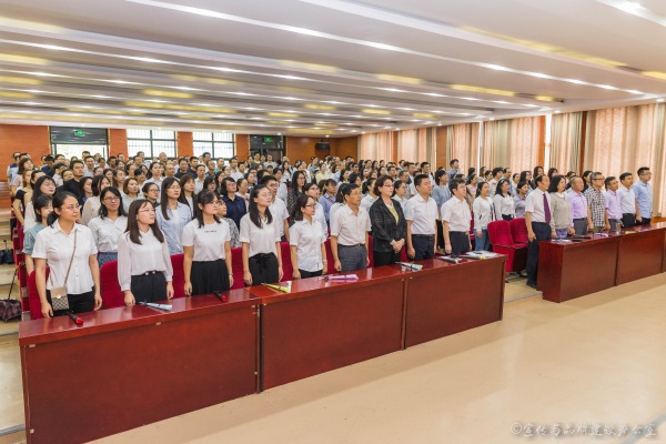 隨后,宣誓儀式開始,在領(lǐng)誓人翁連正副院長的帶領(lǐng)下,400余名全體肅立,右手舉拳,面對國旗莊嚴(yán)宣誓,洪亮的宣誓聲響徹校園,氣氛莊嚴(yán)、隆重、熱烈。