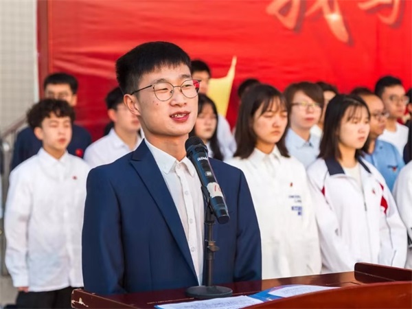 活動(dòng)第三項(xiàng),由來自新傳媒學(xué)院播音與主持專業(yè)的張帥同學(xué)作為黨員代表演講。他滿懷熱情地介紹了新中國成立以來,在中國共產(chǎn)黨的領(lǐng)導(dǎo)下所取得的成就。言語之間透露著強(qiáng)烈的愛國情感。表達(dá)了愛國心,報(bào)國志,并號(hào)召廣大同學(xué)與祖國共奮進(jìn)。