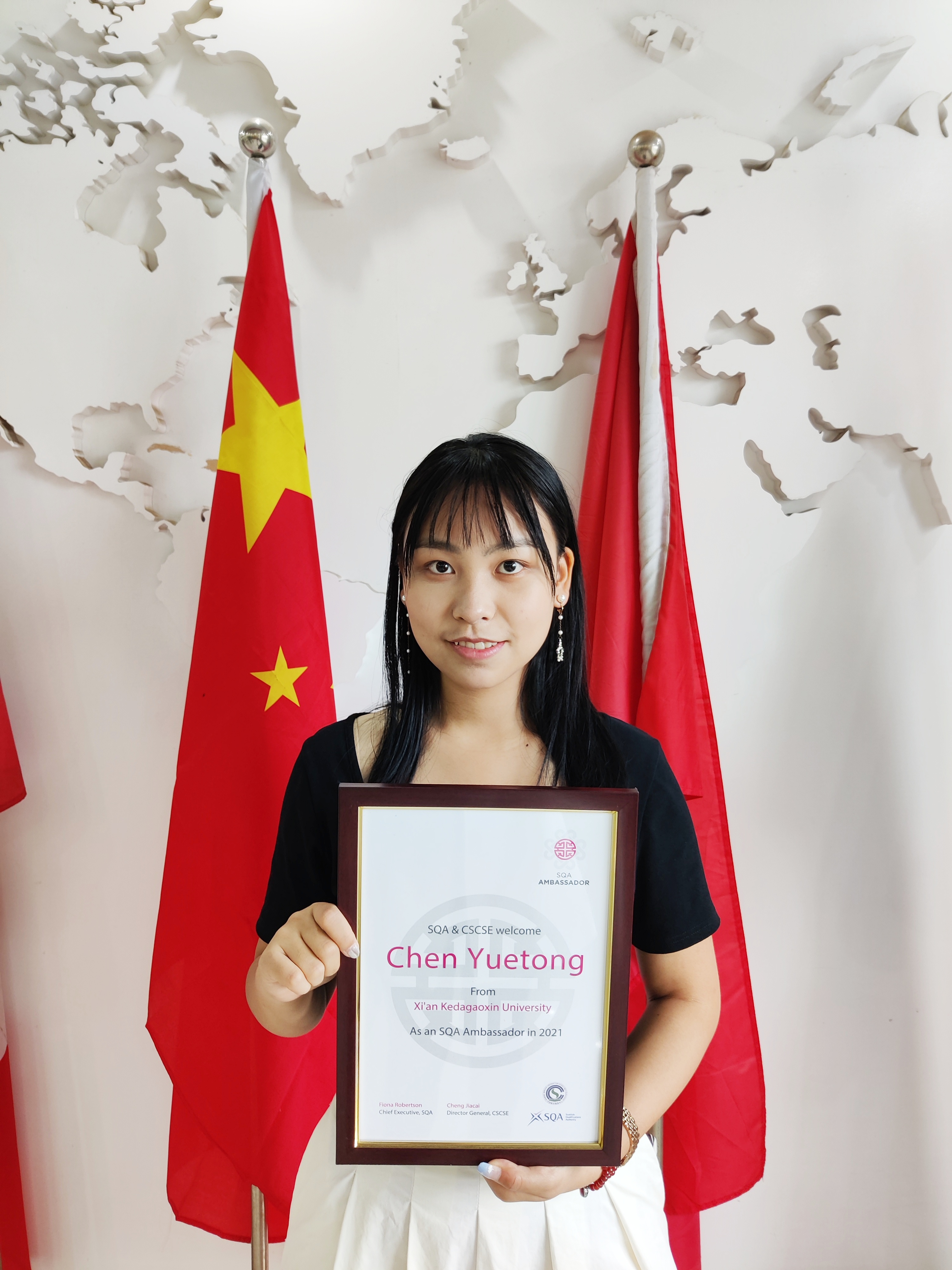 陳玥彤同學(xué)被授予2021年SQA-AD理想大使光榮稱(chēng)號(hào)