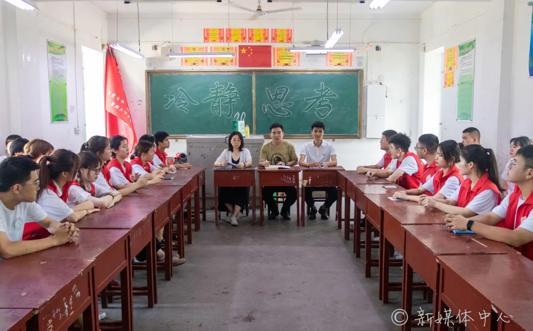 ? ? ? ?當(dāng)日一早,志愿者隊(duì)伍在學(xué)院北一教學(xué)樓前舉行了2021年暑期“三下鄉(xiāng)”出征儀式,行車至午間到達(dá)陵前鎮(zhèn)中小學(xué)。經(jīng)過(guò)短暫休整,下午,此次活動(dòng)指導(dǎo)老師團(tuán)委副書記王添亮集合全體志愿者召開(kāi)會(huì)議,進(jìn)行工作分配及注意事項(xiàng)的講解,志愿者分為兩隊(duì)分別進(jìn)行兩個(gè)課題的研究,各隊(duì)隊(duì)長(zhǎng)在會(huì)后分配具體職責(zé)。新傳媒與藝術(shù)學(xué)院團(tuán)總支書記王磊老師針對(duì)志愿者的住宿問(wèn)題、儀表形象進(jìn)行規(guī)整要求,對(duì)出行安全等安全問(wèn)題進(jìn)行強(qiáng)調(diào),并鼓勵(lì)各志愿者們都能緊靠“永遠(yuǎn)跟黨走,奮進(jìn)新時(shí)代”的實(shí)踐主題,積極投入到志愿服務(wù)當(dāng)中,為學(xué)院取得良好口碑。