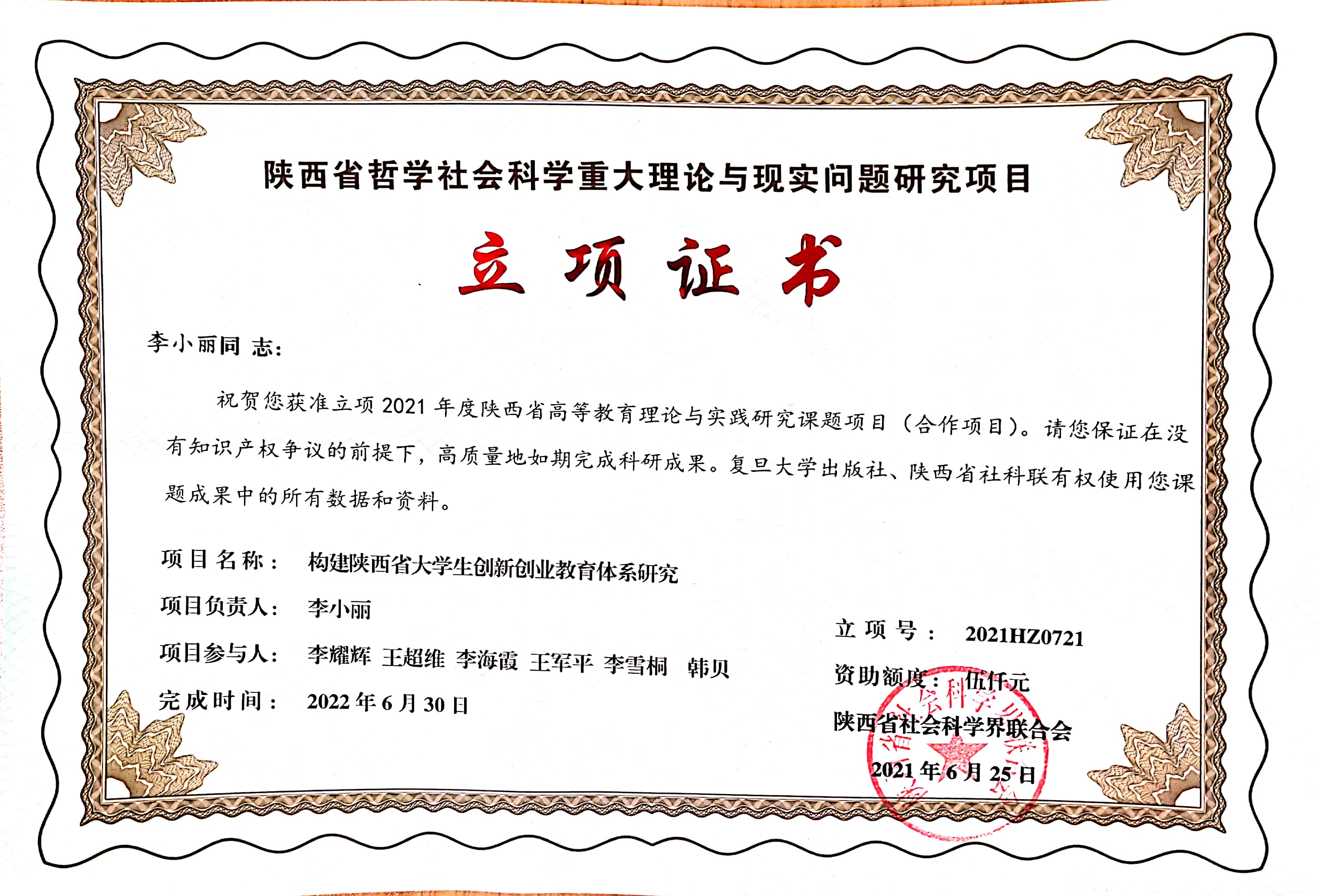 ? ? ? ?近日,陜西省社會科學(xué)界聯(lián)合會先后發(fā)布了《關(guān)于公布2021年度高等教育社科理論研究課題立項結(jié)果的通知》《關(guān)于公布2021年度陜西省統(tǒng)計科學(xué)課題立項結(jié)果的通知》,其中,西安科技大學(xué)高新學(xué)院經(jīng)濟(jì)與管理學(xué)院副院長李小麗主持的《構(gòu)建陜西省大學(xué)生創(chuàng)新創(chuàng)業(yè)教育體系研究》及國際教育與人文學(xué)院教師劉清波主持的《英語寫作教學(xué)與評價改革研究》項目,榮獲高等教育社科理論研究課題立項,獲批研究經(jīng)費(fèi)1萬元;經(jīng)濟(jì)與管理學(xué)院教師梁慧珍主持的《大數(shù)據(jù)背景下地方政府統(tǒng)計現(xiàn)狀及路徑轉(zhuǎn)型研究》項目,榮獲陜西省統(tǒng)計科學(xué)課題立項,獲批研究經(jīng)費(fèi)0.5元。