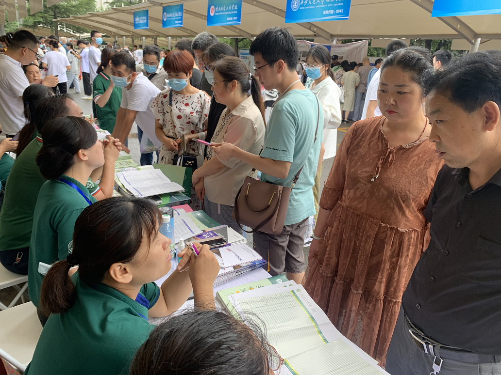 ? ? ? ? 高溫堅守,“炎值”爆表。7月24至25日,各二級學(xué)院學(xué)科帶頭老師不僅有豐富的教學(xué)實踐經(jīng)驗,在現(xiàn)場大家不懼酷暑,積極耐心的為前來咨詢的考生進行咨詢。解讀學(xué)院錄取政策,引導(dǎo)考生按照“平行志愿”原則,選擇不同梯度的院校,“沖、穩(wěn)、?!焙侠硖顖笾驹浮嵤虑笫?,找準(zhǔn)自己的位置;冷門與熱門學(xué)校專業(yè)相結(jié)合;省內(nèi)與省外院校相結(jié)合;避開體檢結(jié)果所限學(xué)校、專業(yè);批次內(nèi)學(xué)校志愿、專業(yè)志愿填滿,盡量服從專業(yè)調(diào)劑??忌图议L也因此受益匪淺,紛紛主動添加招辦官方聯(lián)系方式,以便后期有疑問可隨時解答。