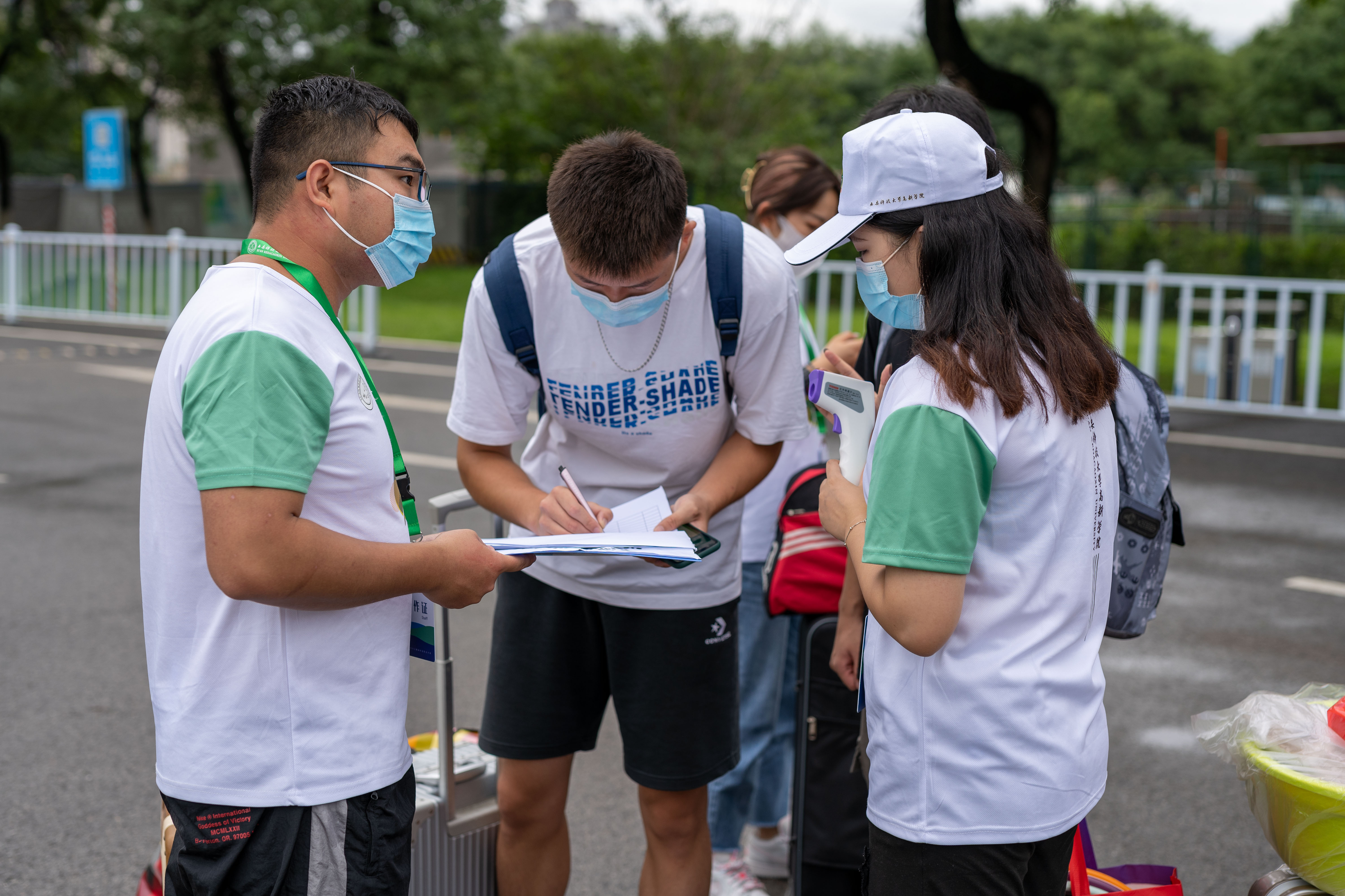 ? ? ? ?8點,前來報到的新生家長陸續(xù)抵達。記者在現(xiàn)場看到,新生家長進校,需佩戴口罩,掃碼查驗健康二維碼“綠碼”及通信大數(shù)據(jù)行程卡“綠卡”,提供省外48小時、省內(nèi)14天內(nèi)核酸檢測陰性證明,測溫正常方可入校報到。