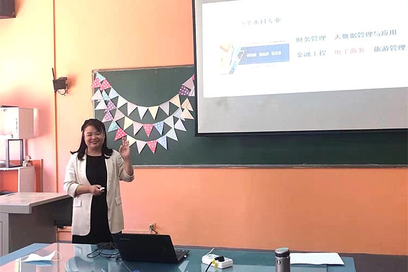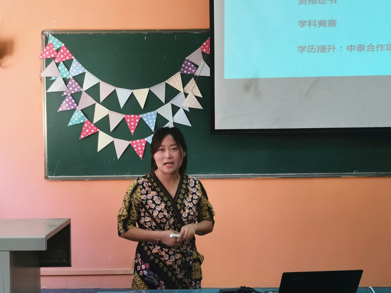 ? ? ? ?電子商務(wù)專業(yè)教師韓貝從資格證書、專業(yè)競(jìng)賽、學(xué)歷提升(中泰國(guó)際合作辦學(xué)項(xiàng)目)三個(gè)方面為新生做了精彩分享,為新生四年大學(xué)的專業(yè)學(xué)習(xí)與生活指明了方向。