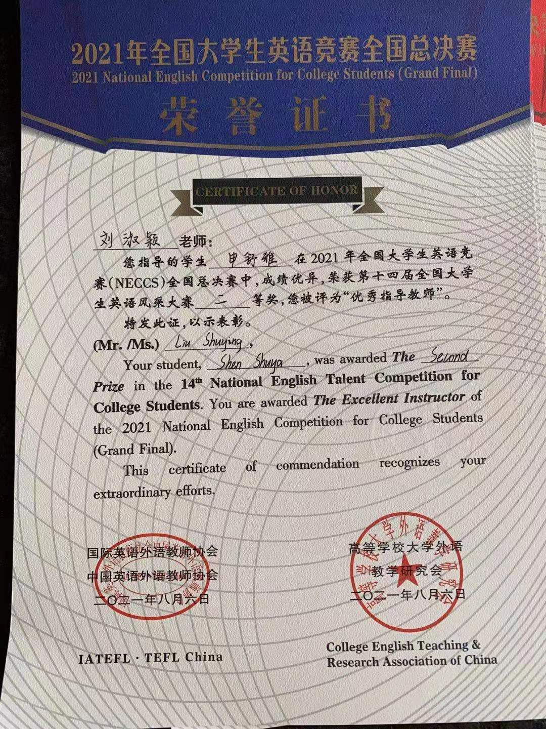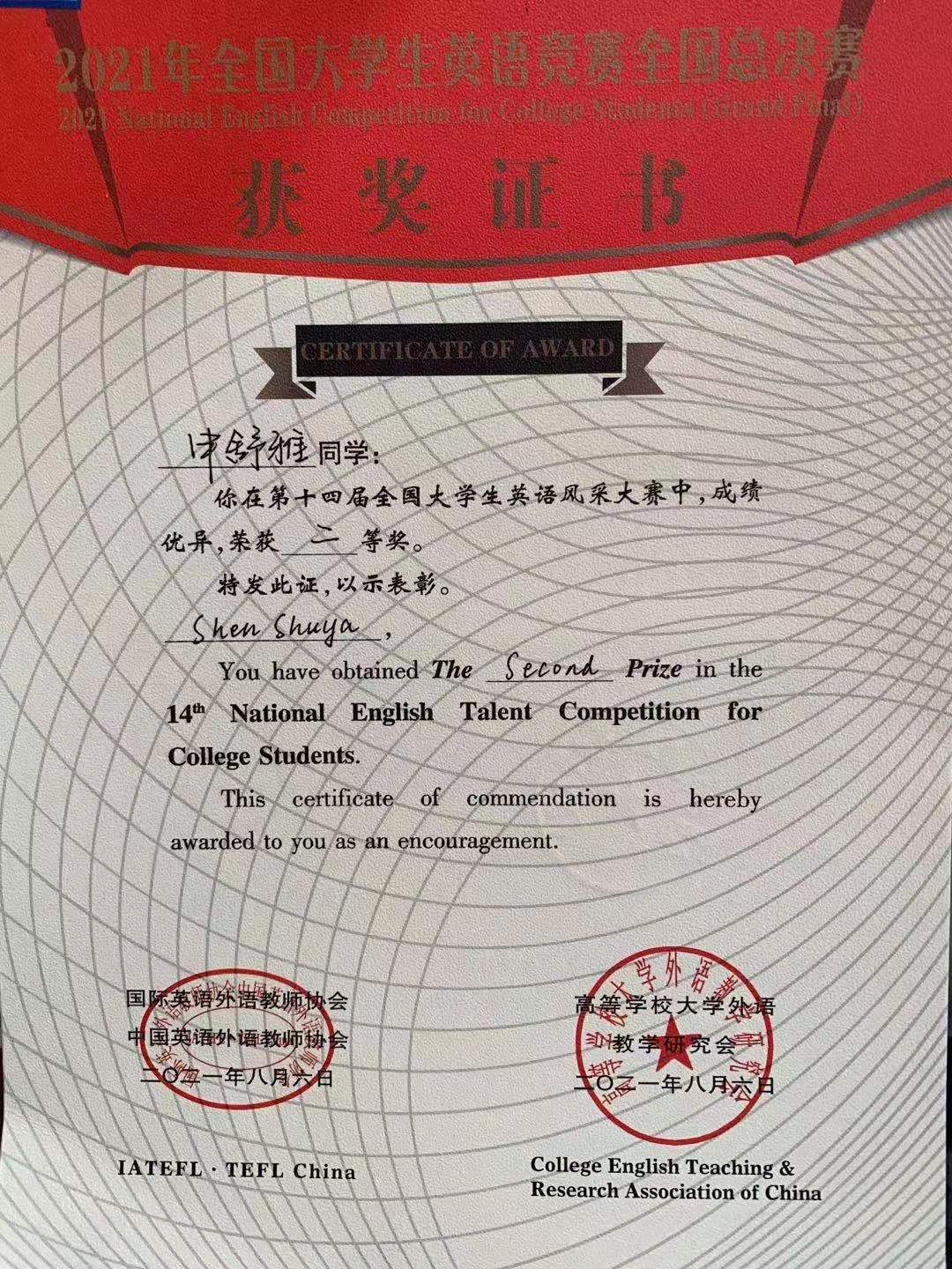 國院學(xué)子斬獲全國大學(xué)生英語競賽總決賽國家級二等獎
