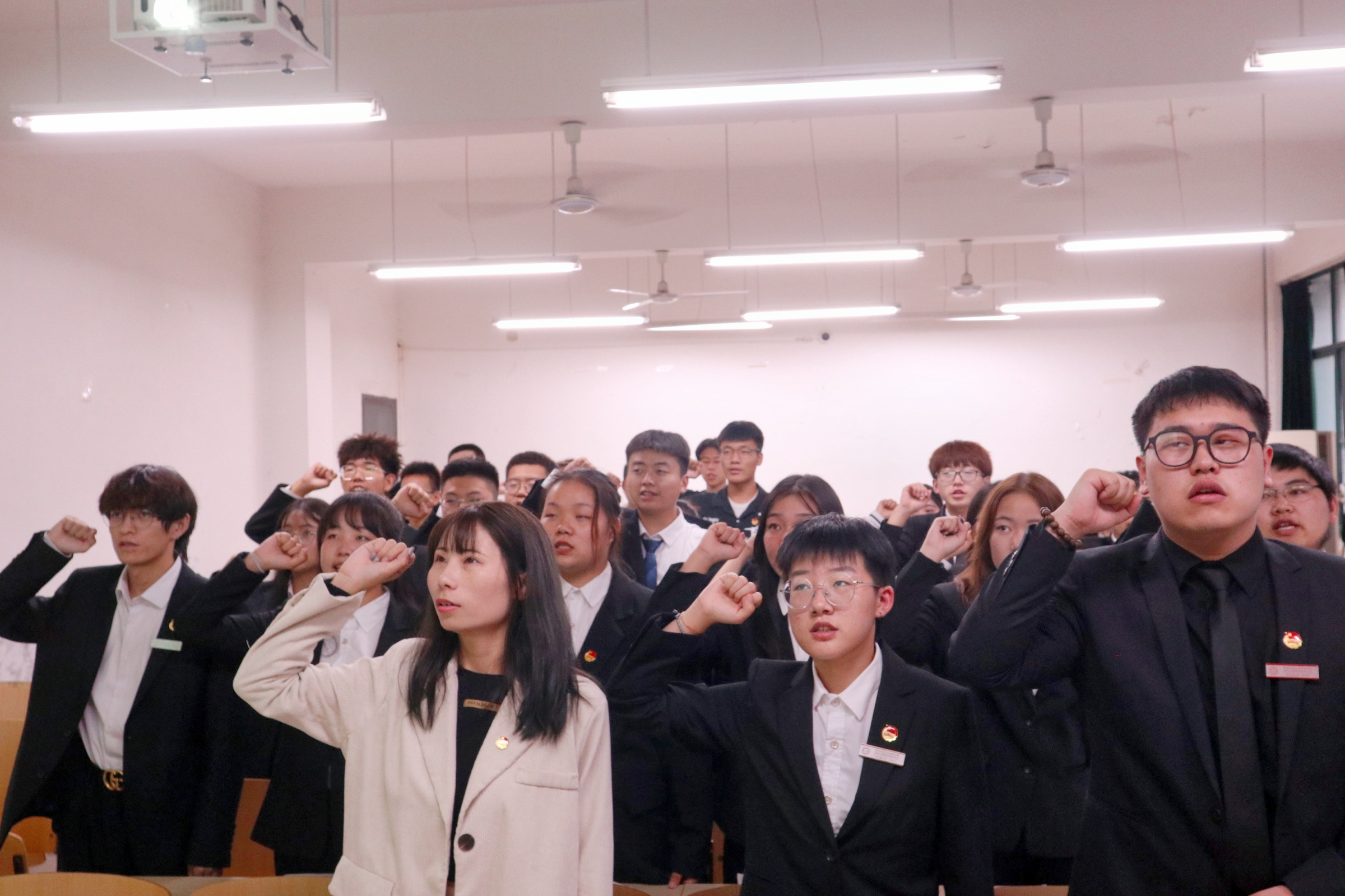 ? ? ? ?發(fā)言結(jié)束后,學生會負責人張棟帶領(lǐng)宣誓。