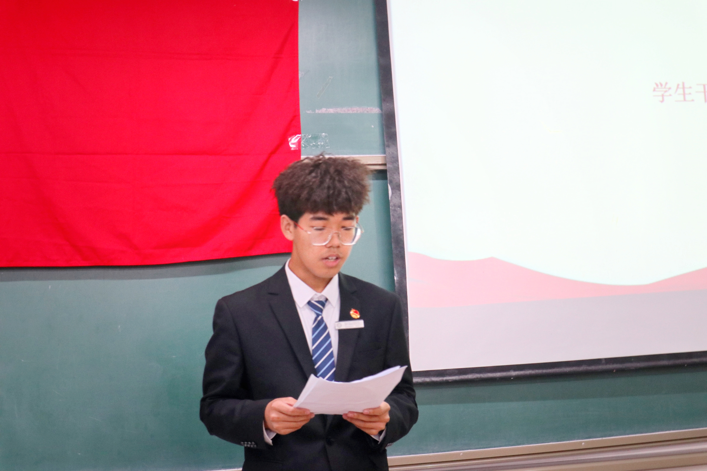 ? ? ? ?學生會負責人廖軼琛強調(diào)學生干部首先是學生,其次是干部,學生要認清自己的身份,杜絕社會風氣侵入校園。做好一名合格的學生干部必須要端正態(tài)度,樹立服務(wù)意識,心懷感恩,同時要以嚴格的要求要求自己,不松懈,不懶惰,始終肩負責任感和使命感,不斷在工作和生活中塑造自己,始終牢記全心全意為同學服務(wù)的宗旨,始終牢記先學生,后干部。努力沉淀,砥礪前行。