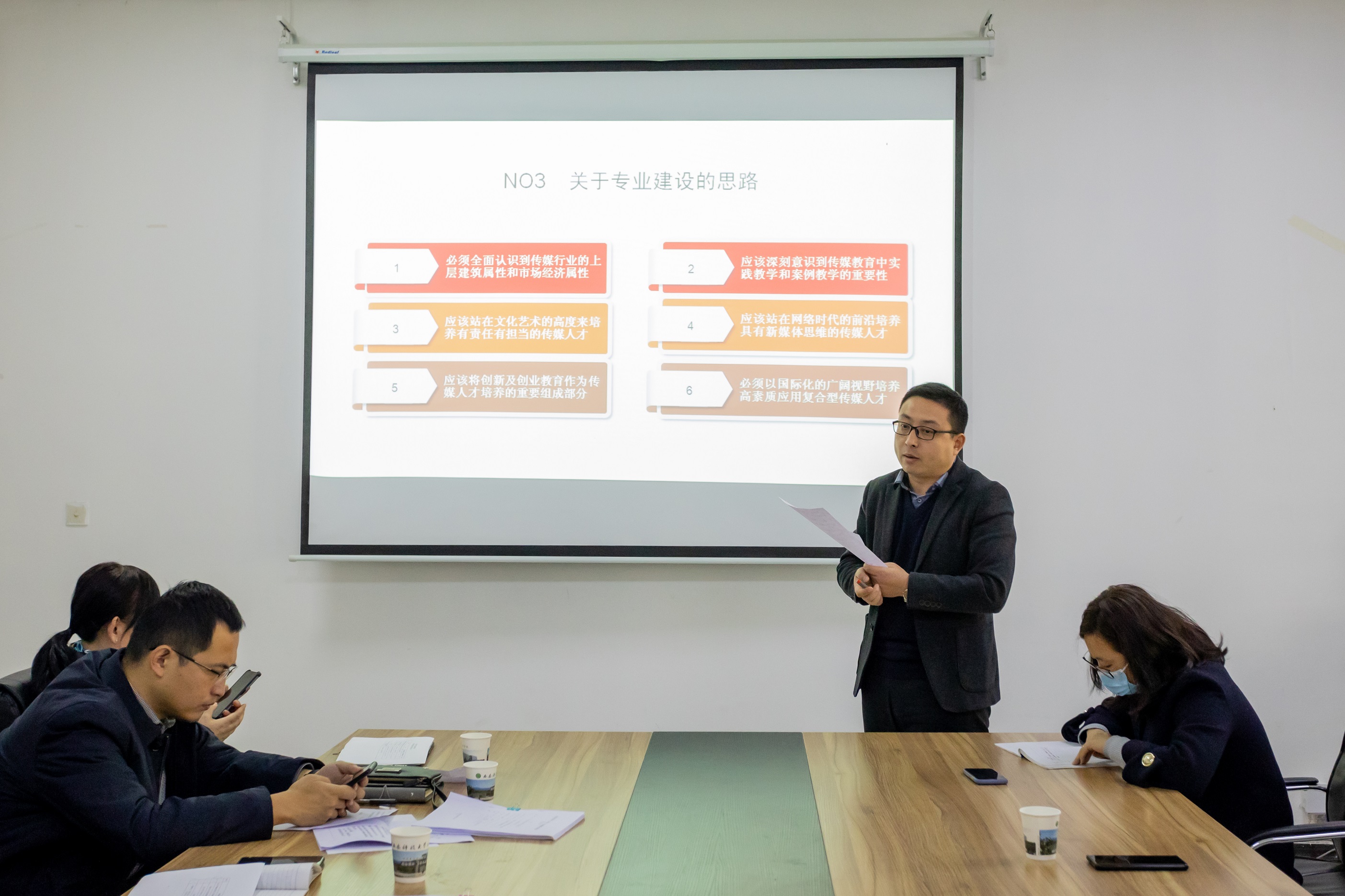 ? ? ? ?評(píng)審組依據(jù)《通知》中的申報(bào)條件,聆聽(tīng)各申報(bào)單位教學(xué)成果主要完成人的匯報(bào),對(duì)4份申報(bào)資料進(jìn)行了審核、研討。經(jīng)評(píng)審組認(rèn)真研究審核,最終遴選出新傳媒與藝術(shù)學(xué)院報(bào)送的“基于產(chǎn)教融合背景之下網(wǎng)絡(luò)與新媒體專業(yè)的發(fā)展探究”申報(bào)項(xiàng)目,擬推薦至陜西省教育廳參評(píng)2021年陜西省高等教育教學(xué)成果獎(jiǎng)。