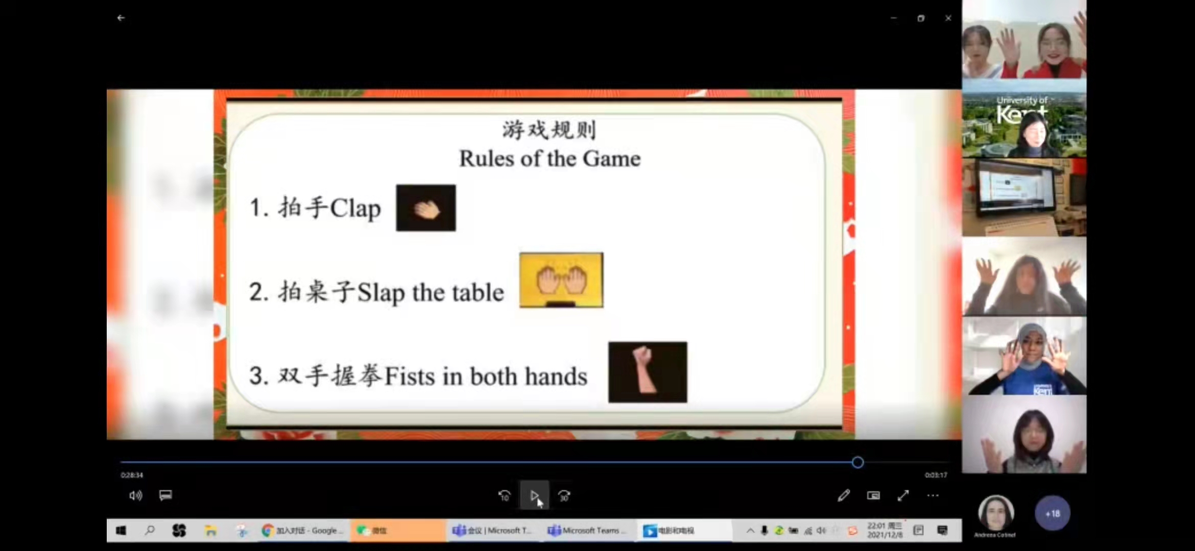 ? ? ? ?北京時間2021年12月8日21:30至22:30,由教育部中外語言交流合作中心支持、西安科技大學(xué)高新學(xué)院與英國肯特大學(xué)合作舉辦的“漢語橋”線上團(tuán)組交流項(xiàng)目“云游十三朝古都——西安”七大特色文化專題項(xiàng)目的第五站“長安歸故里.一曲醉人盡——聆聽古人的浪漫音樂情懷”文化課程體驗(yàn)之旅如期舉行,西安科技大學(xué)高新學(xué)院與英國肯特大學(xué)師生相聚云端,分享交流。
