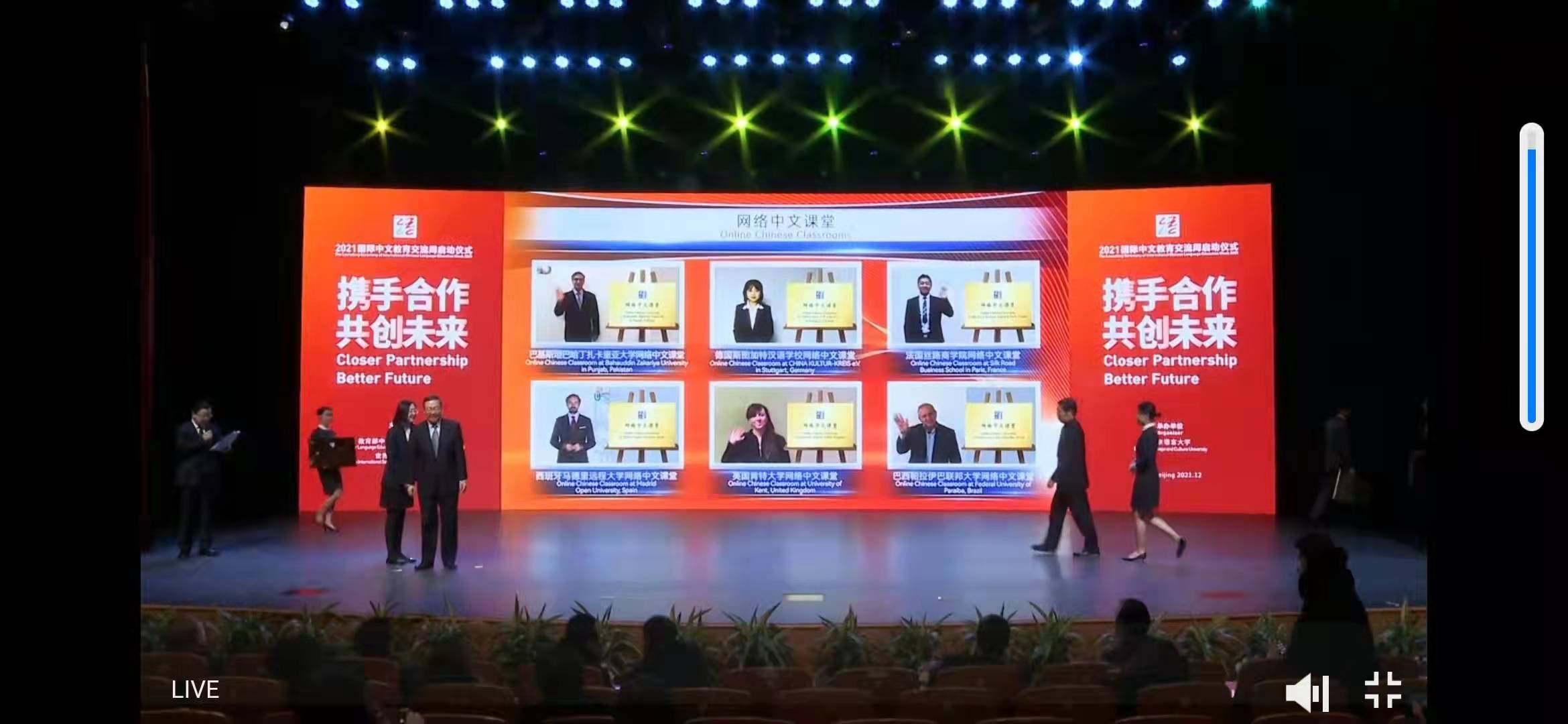 英國肯特大學(xué)網(wǎng)絡(luò)中文課堂代表通過視頻方式與現(xiàn)場互動