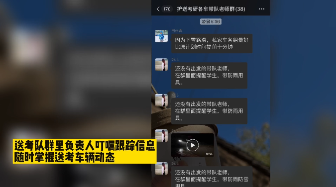 ? ? ? ?此外,校車(chē)司機(jī)在封校前全員返回學(xué)校,服從調(diào)度,輔導(dǎo)員老師們主動(dòng)請(qǐng)纓,為考研學(xué)生提供出行幫助。每輛送考車(chē)分別安排領(lǐng)隊(duì)老師和組長(zhǎng),送考隊(duì)微信群里負(fù)責(zé)人叮囑跟蹤信息,隨時(shí)掌握送考車(chē)輛動(dòng)態(tài),同時(shí)準(zhǔn)備了暈車(chē)藥和個(gè)人防護(hù)用品,全力以赴助力學(xué)生考研。