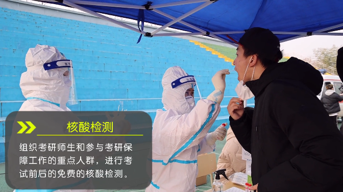? ? ? ? 按照當(dāng)前疫情防控要求,考生應(yīng)在參加考試時(shí)提供48小時(shí)內(nèi)核酸檢測(cè)陰性證明。為了做好今年全院考生的服務(wù)保障工作,學(xué)院積極聯(lián)絡(luò)醫(yī)療機(jī)構(gòu),分別于12月23日(周四)、24日(周五)、26日(周天)晚8點(diǎn)30分,組織考研師生和參與考研保障工作的重點(diǎn)人群,進(jìn)行考試前后三次免費(fèi)的核酸檢測(cè)。