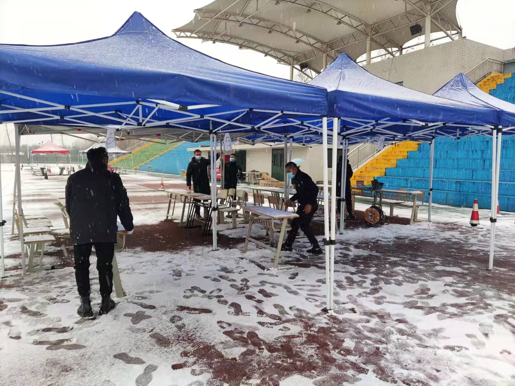 ? ? ? ?保衛(wèi)與后勤保障處負責(zé)的工作主要是核酸檢測場地布置、醫(yī)務(wù)人員及志愿者隊伍的餐飲供給、外圍秩序維護、引導(dǎo)檢測路線及安全保衛(wèi)工作。不畏嚴寒,無數(shù)次大聲喊話疏導(dǎo),雖然辛苦,但所有人從未想過退卻。經(jīng)過九輪核酸檢測讓大家深刻體會到了一個詞語“眾志成城”,現(xiàn)場還有其他老師和志愿者同學(xué),他們來自不同的部門、不同的學(xué)院,有著不同的身份,但他們有著統(tǒng)一的目的,確保學(xué)院一人不差完成每輪核酸檢測。也許他們互不認識,但配合默契,心中只有一個共同的心愿“疫情盡快結(jié)束,科大高新加油!西安加油!”我們相信愛與希望比病毒蔓延得更快!