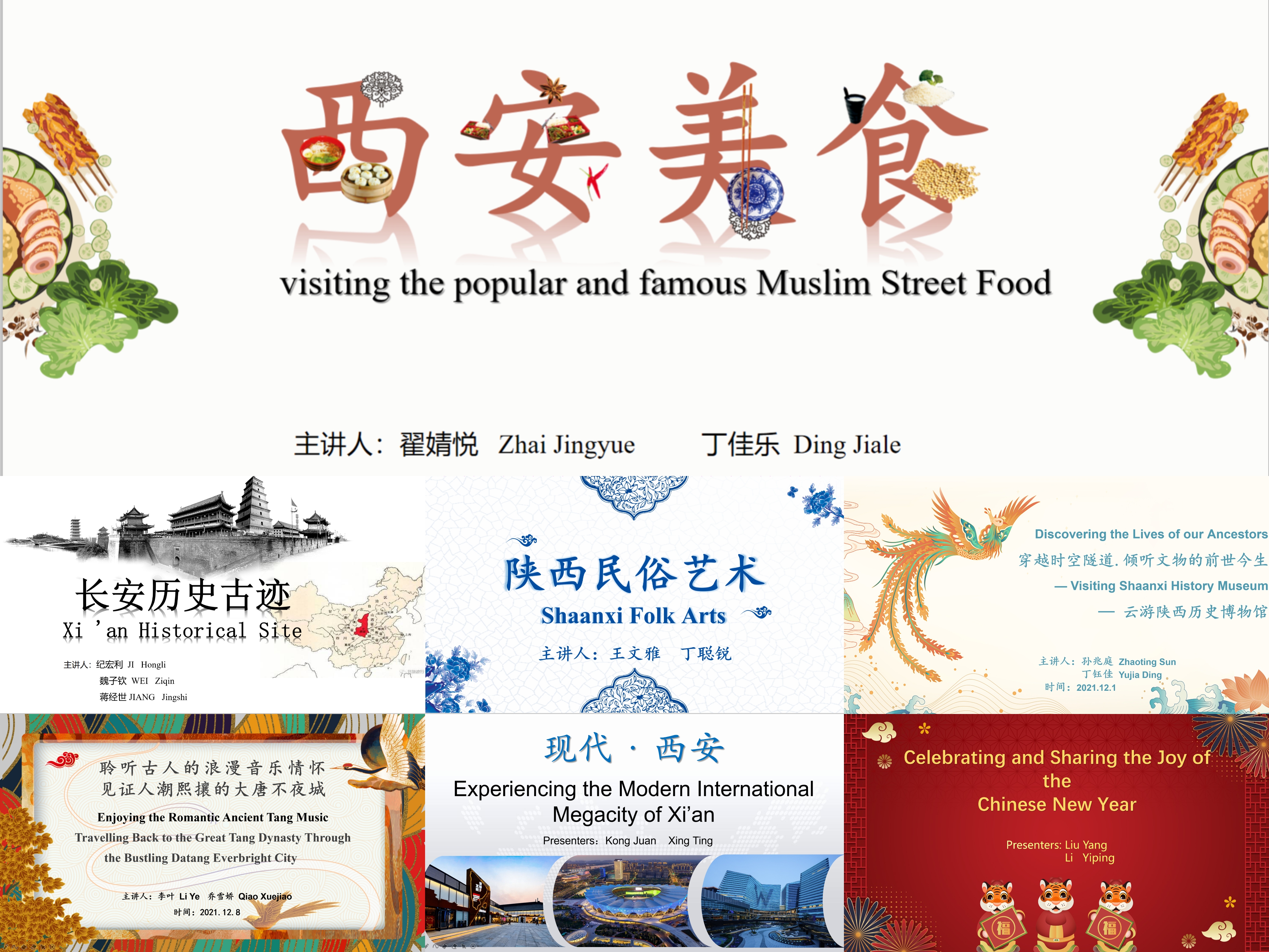 ? ? ? ? 在文化體驗(yàn)課程板塊中,“云游十三朝古都——西安”之旅以美食、建筑、民俗、歷史、音樂、現(xiàn)代化、中國(guó)年七大特色文化為主題,向?qū)W員展現(xiàn)了新時(shí)代背景下千年古都的現(xiàn)代化發(fā)展進(jìn)程及風(fēng)貌。海外學(xué)員跟隨鏡頭云端品味了色香味俱全的中華美食、打卡了獨(dú)具特色的文化地標(biāo)、體驗(yàn)了多姿多彩的民俗工藝、了解了歷史文物背后的故事、聆聽了中國(guó)傳統(tǒng)樂器的動(dòng)聽旋律,見證了古都西安現(xiàn)代與古典的完美融合、領(lǐng)略了中國(guó)春節(jié)的人文風(fēng)情,豐富多彩的線上體驗(yàn)課程,使肯特大學(xué)師生們實(shí)現(xiàn)了“零距離了解西安”,建構(gòu)起文化交流的橋梁。