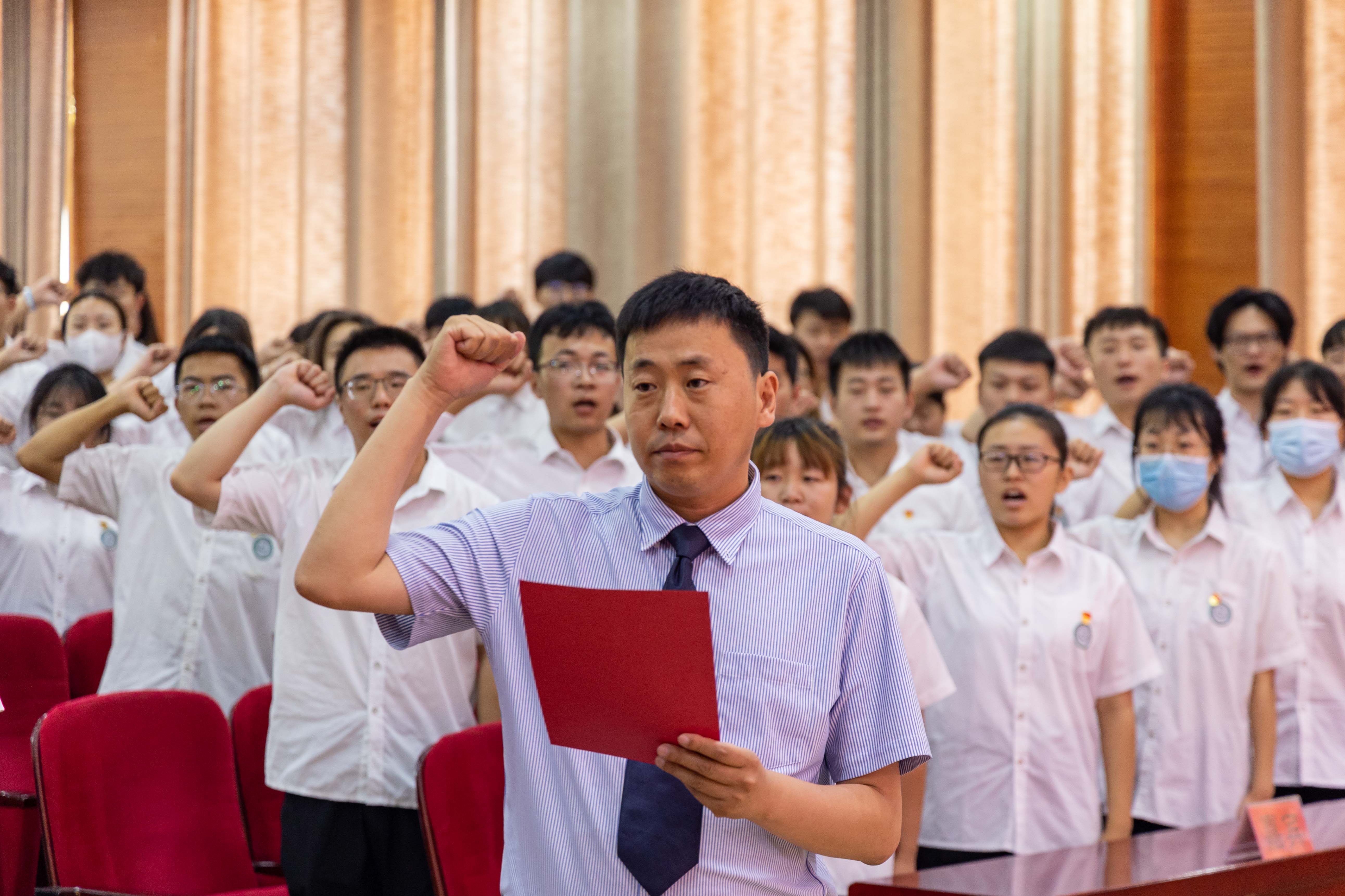 楊佳樂同學(xué)代表預(yù)備黨員發(fā)言。風(fēng)正時濟(jì),自當(dāng)揚(yáng)帆破浪,任重道遠(yuǎn),還需策馬揚(yáng)鞭。改革與發(fā)展永遠(yuǎn)在路上,困難與挑戰(zhàn)相隨伴成長。作為黨旗下的新一代,我們要傳承黨的精神,發(fā)揚(yáng)黨的傳統(tǒng),服從黨的指揮,緊跟黨的步伐,以昂揚(yáng)的斗志和優(yōu)異的成績迎接黨的二十大勝利召開!