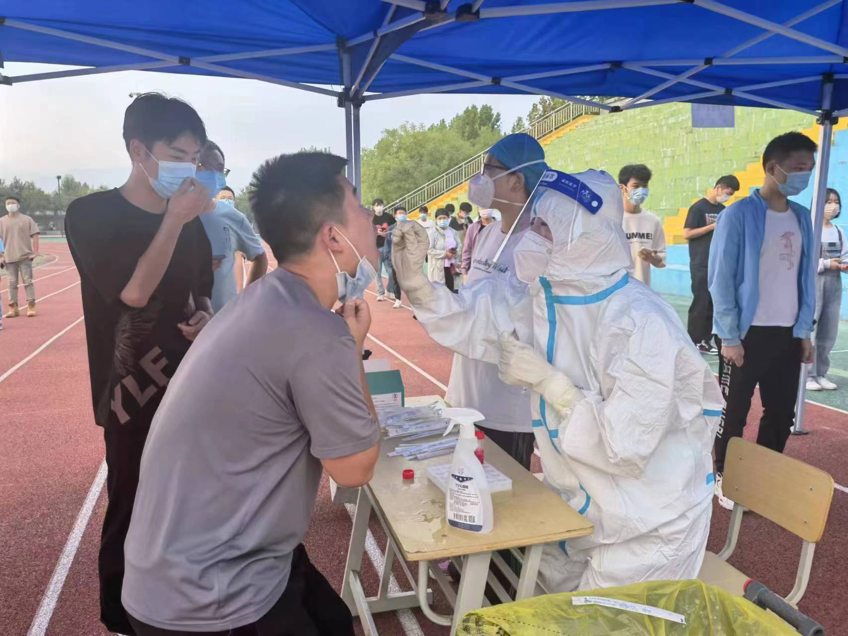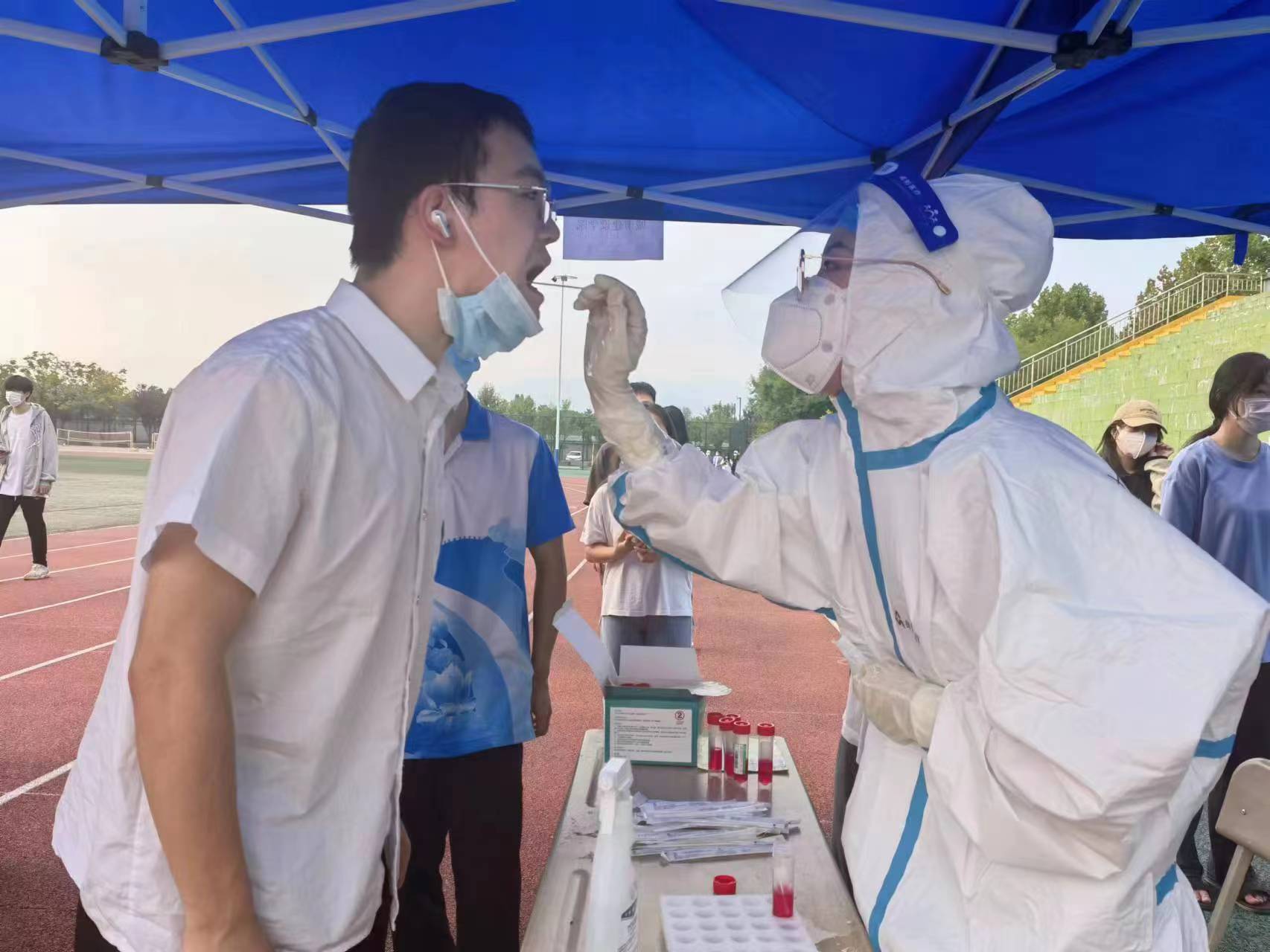 ? ? ? ?9月9日上午,學(xué)院在前期報(bào)名的同志中,選取9名黨員加入到今天的疫情防控志愿服務(wù)中,與學(xué)院醫(yī)院核酸檢測點(diǎn)的醫(yī)護(hù)人員一起共采樣9164人?!疤崆按蜷_一碼通,保持隊(duì)伍間距”,志愿者們組織在校師生及后勤管理人員有序排隊(duì)、逐一測溫掃碼、登記身份信息,引導(dǎo)進(jìn)行標(biāo)本采樣,維持現(xiàn)場秩序,全力保障核酸檢測工作順利進(jìn)行。在這場戰(zhàn)“疫”中,學(xué)院教師與醫(yī)護(hù)工作者、學(xué)生志愿者一起并肩作戰(zhàn),亮身份、踐初心、當(dāng)先鋒,帶上口罩化身“大白”,奔赴一線,將教育情懷轉(zhuǎn)化為抗疫擔(dān)當(dāng)。