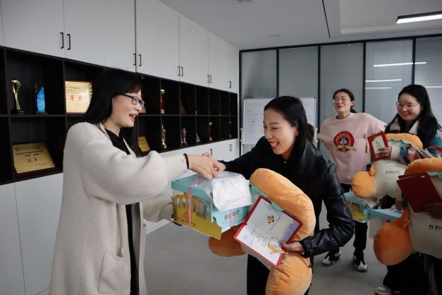 ? ? ? ?10月28日上午,學生處處長胡純、學生處副處長李樂文、副處長兼團委書記滕嬋娟帶領(lǐng)學生處老師深入各二級學院為9月、10月過生日的夏盼雨、徐婷、李慧瑛、陳霄、陳偉瑩、李銳、朱銘悅、陶鈺、任小青、李超杰、孫文倩等11位老師送上精心準備的生日賀卡和禮物。