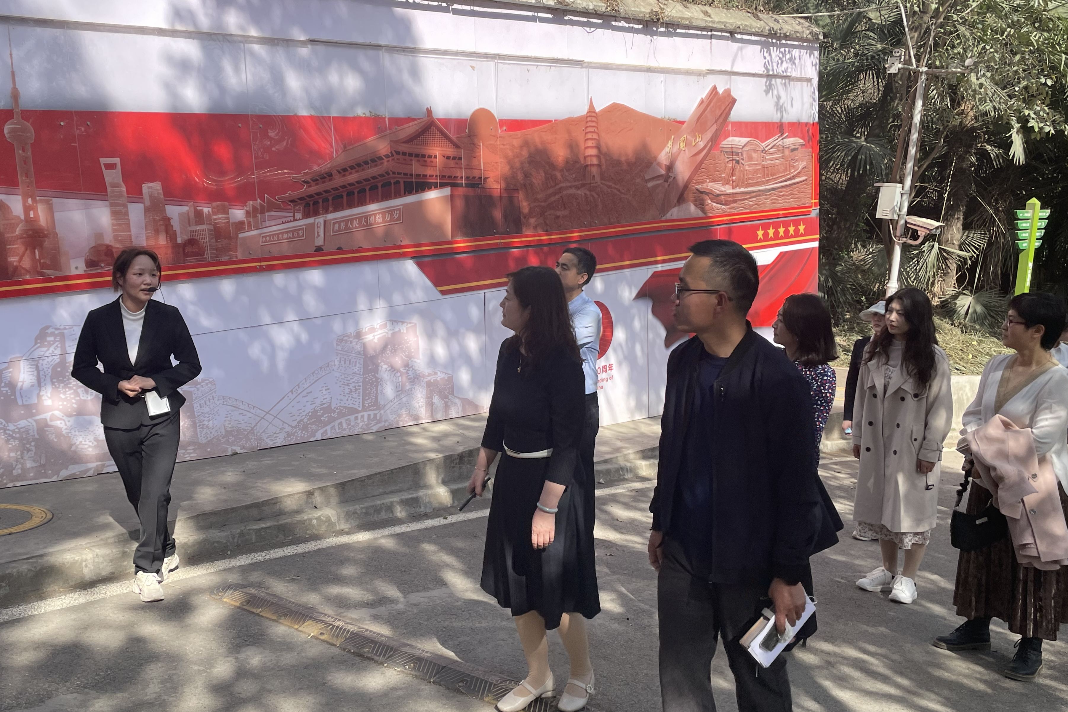 考察過程中首先參觀了陜西職業(yè)技術(shù)學(xué)院的高山流水紅色黨史長廊,由優(yōu)秀學(xué)生社團(tuán) “小紅星”宣講團(tuán)成員引導(dǎo)參觀,生動地講述了革命先烈的光榮事跡,在場所有人都為之動容。在學(xué)林路參觀了陜西職業(yè)技術(shù)學(xué)院校史,講解員獻(xiàn)上一曲《唱支山歌給黨聽》,午后微風(fēng)拂過臉龐,歌聲也被吹入大家的心靈。