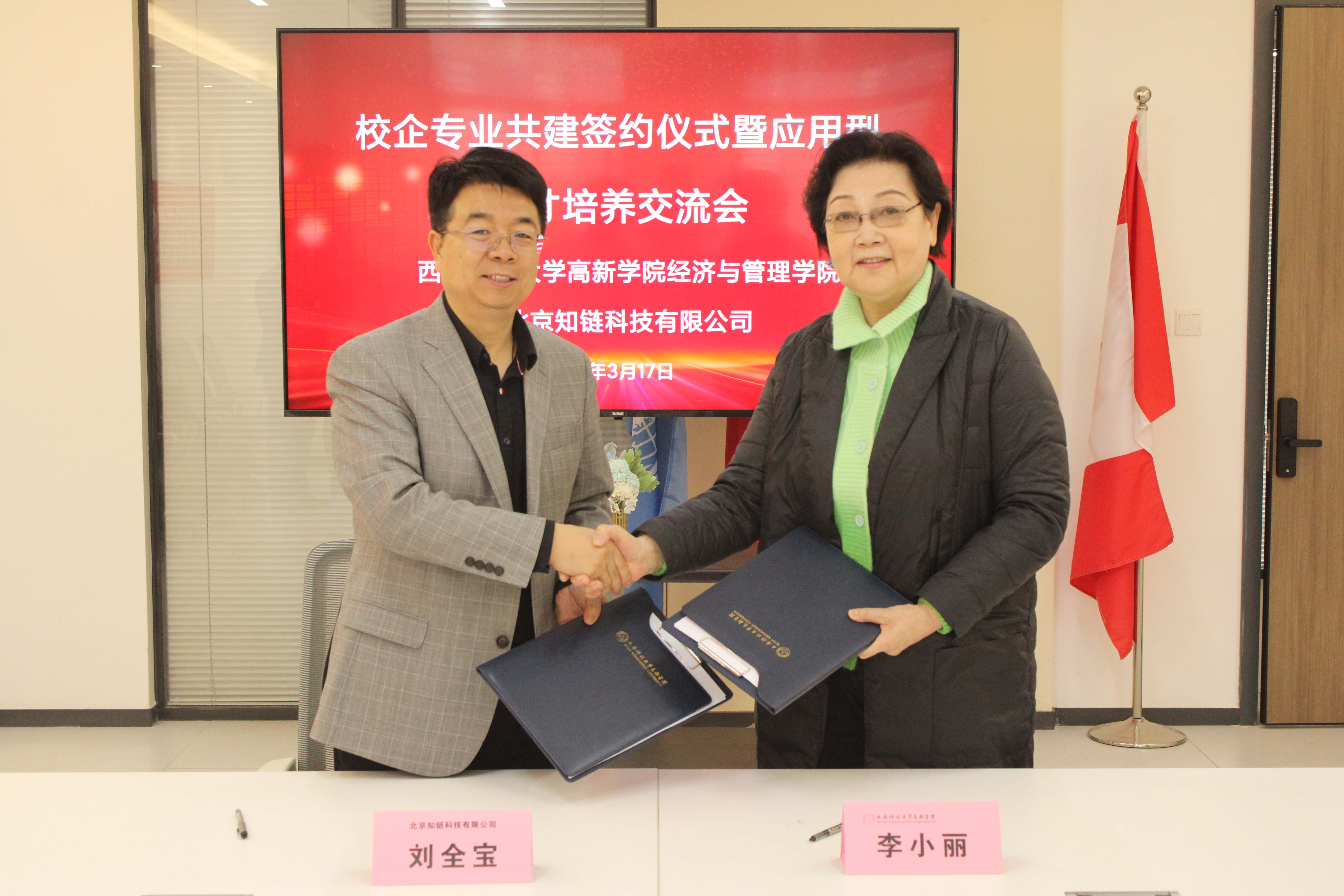 3月17日上午,西安科技大學高新學院經(jīng)濟與管理學院與北京知鏈科技有限公司在日新樓206會議室舉行了校企專業(yè)共建簽約儀式暨應用型人才培養(yǎng)交流會。