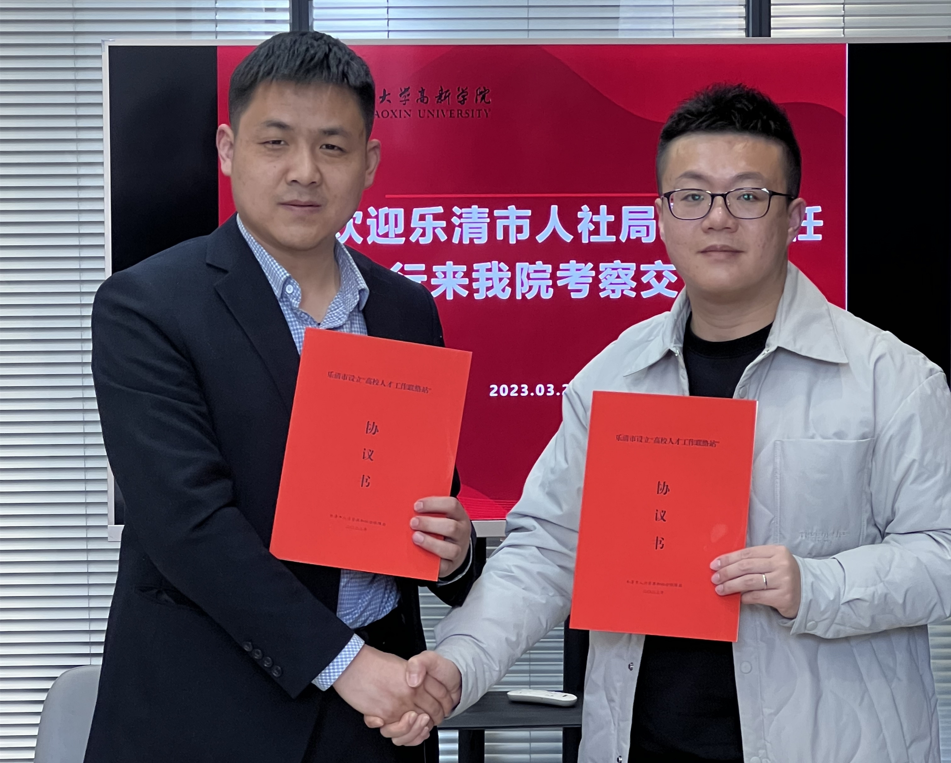 2023年3月23日,樂(lè)清市人社局人才中心鄭挺主任、樂(lè)清市就業(yè)人才中心林鵬副主任、樂(lè)清市人才開(kāi)發(fā)部張森隆部長(zhǎng)等一行來(lái)學(xué)院交流考察。