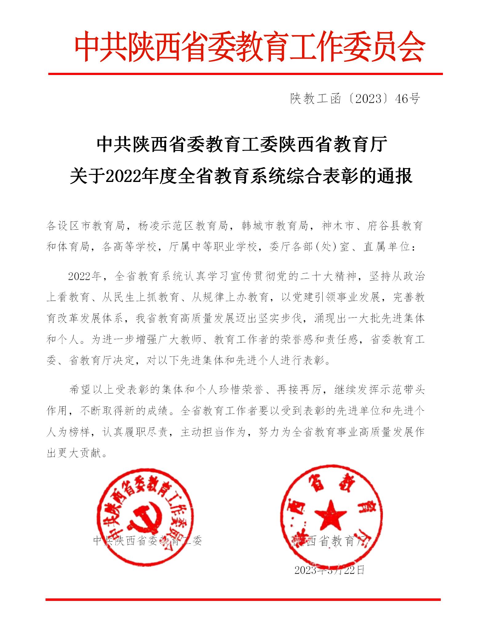 日前,陜西省教育工委、陜西省教育廳下發(fā)了《關于2022年度全省教育系統(tǒng)綜合表彰的通報》(陜教工函〔2023〕46號),學院榮獲“陜西省學生資助工作先進單位”稱號,學生處資助管理中心于巧平同志榮獲“陜西省學生資助工作先進個人”稱號,本次榮譽是省教育工委、省教育廳對學院學生資助工作的充分肯定。