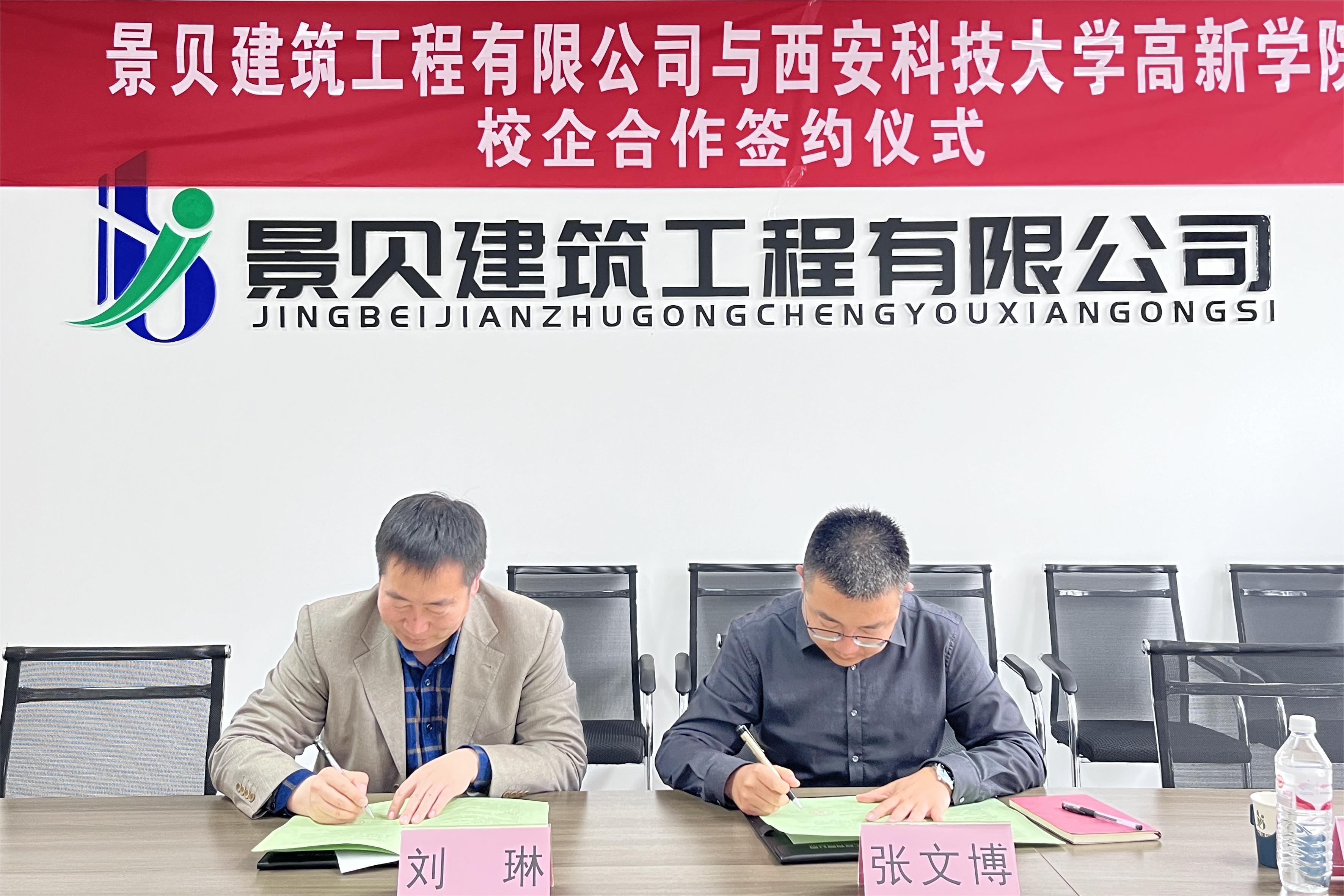 西安科技大學(xué)高新學(xué)院一行前往延安景貝建筑工程有限公司參觀交流,關(guān)懷校友發(fā)展走訪校友企業(yè)的同時,雙方也就人才培養(yǎng),人才輸送進(jìn)行了深度交流,并簽訂校企合作協(xié)議。