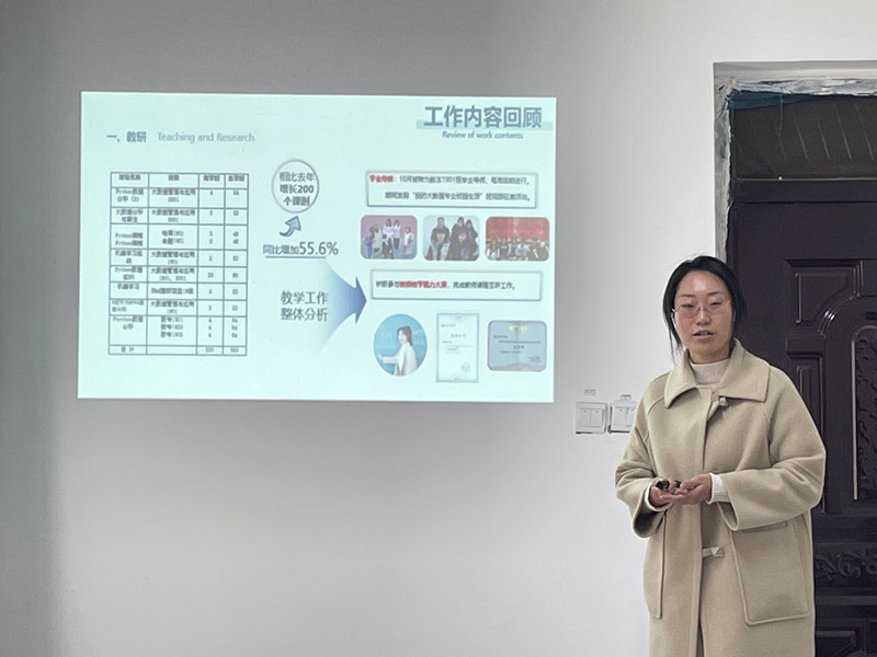 ? ? ? ?教研室各位教師分別圍繞教學情況,包括講授課程、教改、專業(yè)建設(shè)等方面、教研科研情況、指導學生大賽、產(chǎn)學研項目、組織文化建設(shè)工作等維度進行了2021年度主要工作內(nèi)容及工作亮點的總結(jié)匯報,全方位展示個人本年度取得的突出成績,并就這些工作總結(jié)提出了存在的問題及改進措施,以及對下一個年度的工作計劃進行展望。