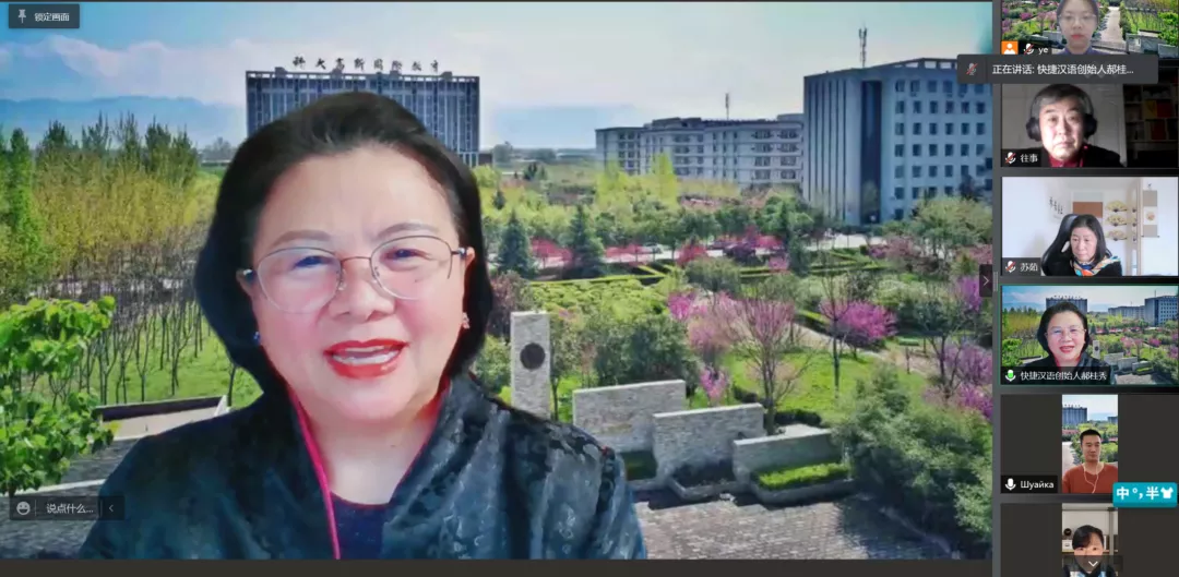 ? ? ? ? 本次比賽有幸邀請到校外專家評委,北京外國語大學(xué)副教授(退休)、快捷漢語總校長郝桂秀老師、咸陽市教育局石高明老師、英國肯特大學(xué)世界語言中心中文部負(fù)責(zé)人蘇茹老師;校內(nèi)專家評委,漢語國際教育教研室李葉老師、魯珺歌老師。線上出席本次大賽的嘉賓有漢語國際教育教研室主任陳苗老師、孔娟老師、文安東老師。本次大賽由漢語國際教育教研室王帥老師擔(dān)任主持,漢語國際教育專業(yè)各年級學(xué)生進(jìn)行線上觀摩學(xué)習(xí)與互動。