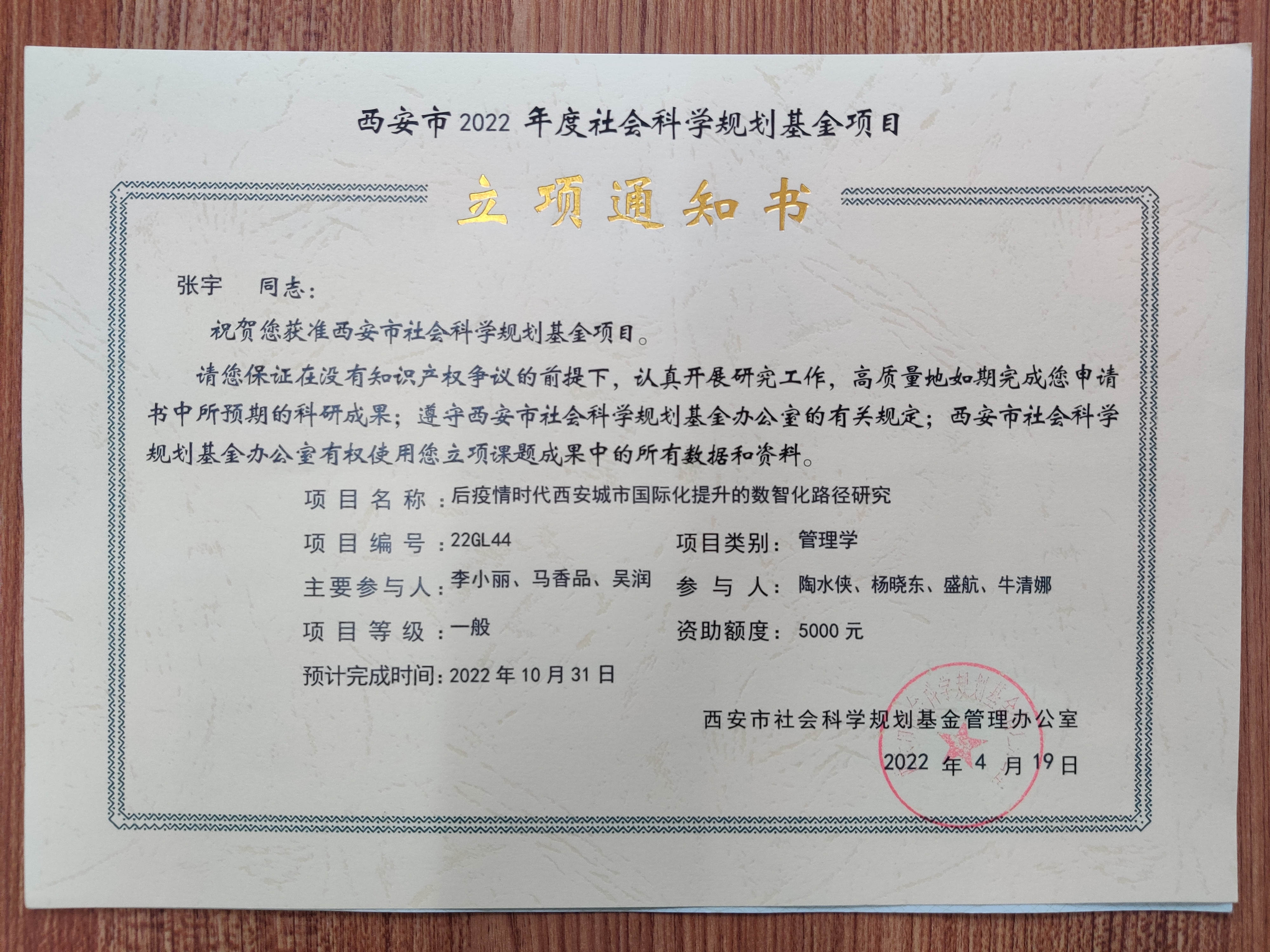 ? ? ? ?經(jīng)過2022年陜西省社會科學聯(lián)合會、西安市社會科學規(guī)劃基金項目立項評審會議評審,陜西省社會科學聯(lián)合會、西安市社會科學規(guī)劃基金領導小組研究同意,西安科技大學高新學院經(jīng)濟與管理學院王軍平、張宇、梁惠珍老師申報的題為《退役軍人統(tǒng)計數(shù)據(jù)應用研究》《百年黨史視闕下陜西鄉(xiāng)村振興實踐發(fā)展路徑研究》《后疫情時代西安城市國際化提升的數(shù)智化路徑研究》課題項目申報成功,豐富了學院科研工作成果。