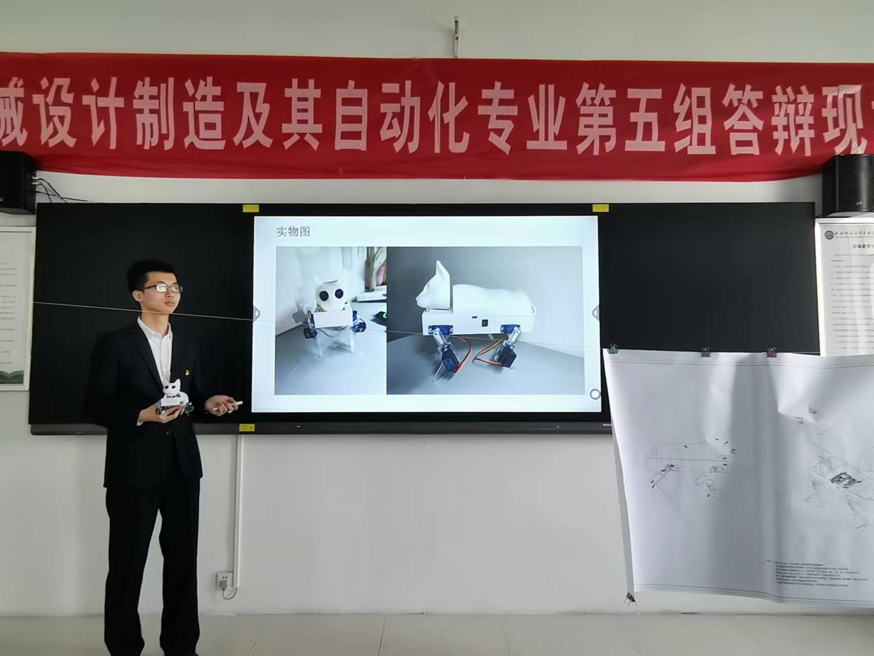 ? ? ? ?本次答辯流程主要由學(xué)生陳述和教師提問兩部分構(gòu)成。答辯學(xué)生從自己論文題目入手分別從需求分析、方案設(shè)計(jì)、具體結(jié)構(gòu)設(shè)計(jì)、三維建模、運(yùn)動(dòng)仿真以及實(shí)驗(yàn)幾個(gè)部分進(jìn)行PPT匯報(bào)。